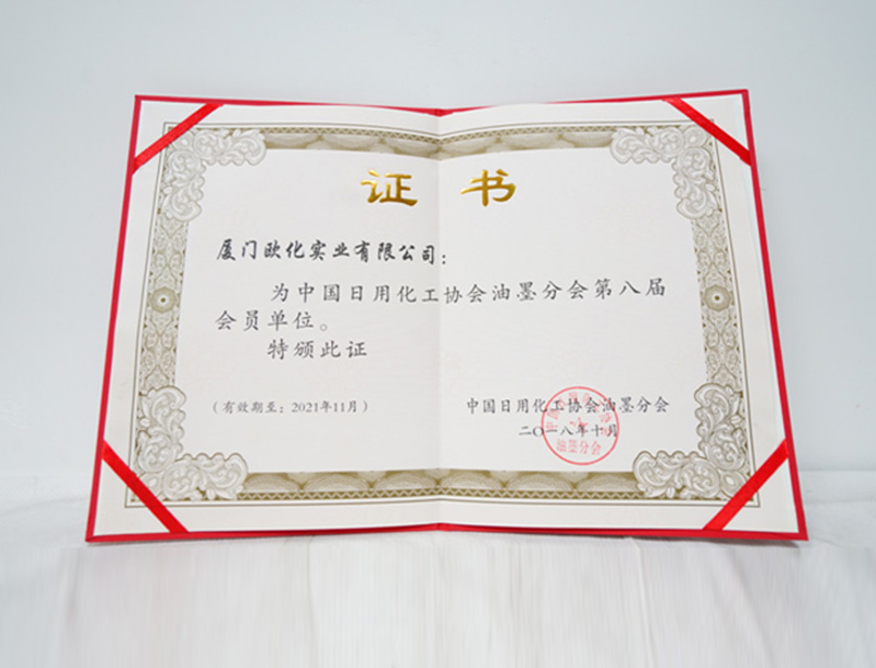 2018年10月,厦门欧化实业有限公司成为中国日用化工协会油墨分会第八届会员单位。